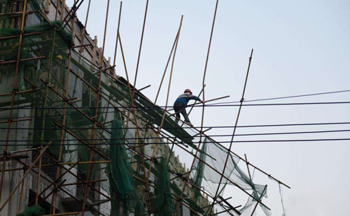 傳統(tǒng)腳手架: 操作人員多,人力成本高; 工程時(shí)間長,增加租賃成本